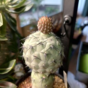 テフロカクタス・ゲオメトリクス おっ、なんか出てきそうな 花?もう一段? 暑いの好きなのかしら。