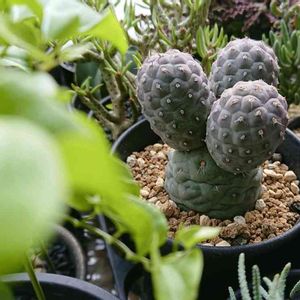サボテン科 テフロカクタス属 ゲオメトリクス。🐱🐱 灰色のサボテンさん。🤓😆 何か可愛い。😁 ピンクの花を咲かせるみたいなんで、見てみたいです。😋