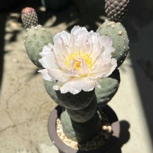 Tephrocactus geometricus テフロカクタス・ゲオメトリクス 今日はちゃんと咲きました〜🌸🎶 pic① 9:30 pic② 11:45 少し晴れ間が出て、全開に咲きました🌸 pic③ ゲオ、蓬莱宮、紫太陽 紫太陽は半開き…力尽きたか(∵`)?! pic④ 昨年と今年のゲオの花を比べてみた🌸 ↖️昨年咲いたゲオちゃんと ↘️今日咲いたゲオちゃん 昨年の花の方が大きく見える👀✨ この日は天気が良かったので、めっちゃ開いてるから…いや、今年の方が心持ち小さいような🤔💭 pic⑤ 雄しべを触ると動いたよ☝️😉 ⬆️触る前 ⬇️触った後 斜め上の雄しべをԅ( ˘꒳˘ ԅ)サワサワ ゲオ、蓬莱宮、紫太陽の花で 🏷可憐な火曜日 🏷ピンクワールドへ ようこそ(今日も💦) pic①の🐮コラージュで 🏷牛の日 参加させていただきます(⋆ᴗ͈ˬᴗ͈)” ゲオちゃんの花が大好き🩷 でも、子株も出してね🤗 出来たら、ミッキーみたいに頭に2つ… 🙏オナシャ~ス