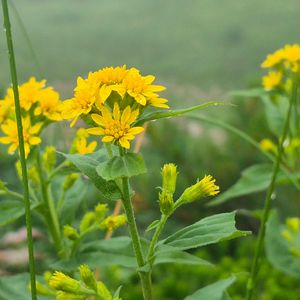 ミヤマアキノキリンソウ(深山秋の麒麟草) キク科 アキノキリンソウ属 7~9月 20~100cm 在来種 多年草 亜高山帯~高山帯の草地、礫地 ミヤマアキノキリンソウで合っていますでしょうか😅