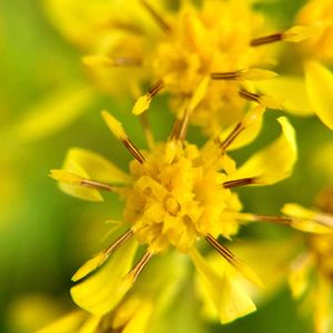 ミヤマアキノキリンソウ 旭岳(北海道)のロープウェイ駅近くで撮りました。 標高約1600m、体感15℃。霧で視界不良のため良い景色は見れず。 雨後の様に植物が濡れていました。