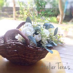 シャビー&ナチュラル千葉認定校のアトリエテラスです。 バスケットアレンジメント。 体験レッスンでお作り頂きました。 京成線ユーカリが丘駅から徒歩5分のお教室です。