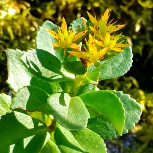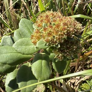 キリンソウ(麒麟草・黄輪草) ベンケイソウ科キリンソウ属の 多年草 別名 キズクサ・キジンソウ(傷薬の草という意味だそうです) 岩の上に生えていました。 花は、殆ど、終わって、実をつけ始めているものも見られました。 ほんの少しだけ、輪状についた黄色の花が残っていて見られました。 葉が、肉厚で、多肉植物のように見えました😆
