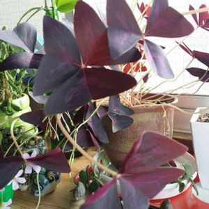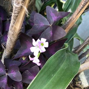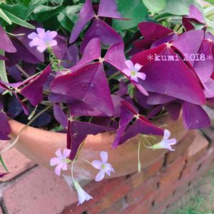 何年か前に義母に頂いたオキザリス💕 四季咲きで何度となくお花が咲いてくれます。 紫の三角葉がお気に入り💖🎵 カタバミ科 カタバミ属