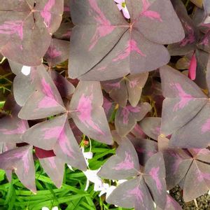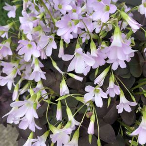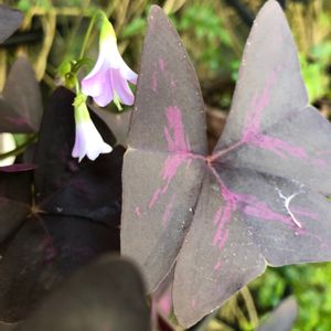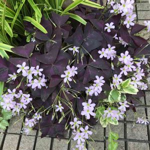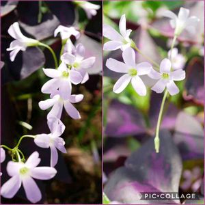 今日のお花、オキザリス。 オキザリス・トリアングラリス。 カタバミ科カタバミ属。 別名:紫の舞、トライアングラリス、カラスバカタバミなど。 基本種の葉は緑で、亜種の紫葉が「トリアングラリス」として流通しているようです。 カタバミ属はどれも小さなお花が可愛いのですが、トリアングラリスは紫の三角形の葉が特に美しく、お花の付け根の茎が細くて可愛いです💓 お隣さんから頂いたお花で、雑草のカタバミとは違い、今のところ増えて困ることはありません😉 何回もpic を撮ってみたのですが、地面近くに咲くので、雨の後は泥がはねたり、日が当たらないと開かないし…💦 今回は、葉が綺麗に写っているものと、お花がまとまって咲いているものを合わせてみました💕