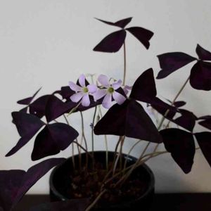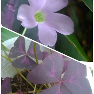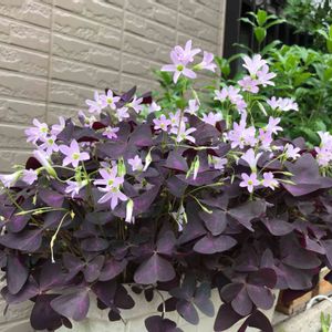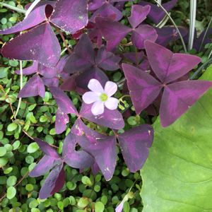 引っ越しをして2ヶ月、お庭に生えてきました。 色のついたクローバーの様な葉っぱで、草取りの際になんとなく残しておいたところ、薄紫のお花が咲きました。