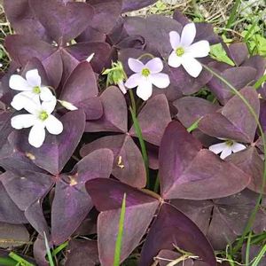 おはようございます。今朝も雨の中の通勤で、少し気が滅入ります。 さて、今日はオキザリス・トリアングラリスです。紫色の三角形の葉が特徴的なカタバミ科の花です。元々はブラジル原産だそうですが、広く見られます。淡い桃色の花と紫の葉とのコントラストが見事です。 2018/4/30 岐阜県本巣市にて撮影。 Oxalis triangularis
