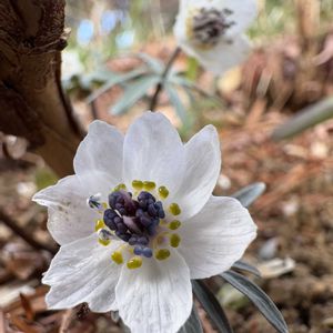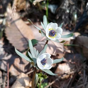 セツブンソウ(節分草) 小さい白いお花が 楚々と咲く 可憐な姿に感動👏🏻👏🏻 良く似た梅花黄蓮との 見分け方は 開花時に花茎に葉が 付いているのが 節分草👍 梅花黄蓮は真っ直ぐな 茎が伸びている☝️ どちらも大好きな💕お花