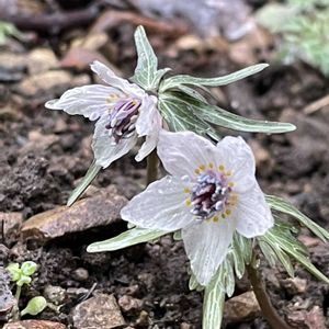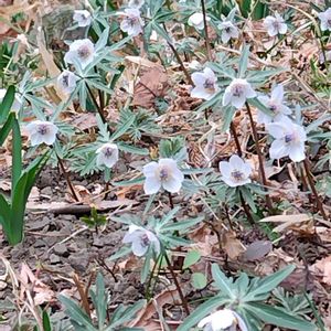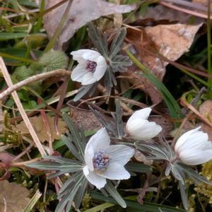 セツブンソウ 寒波のあと暖かい日が続いたので、曇り空ではあったけれど、自生地へと1時間ほど車を走らせる🛻 花弁のように見える萼片の数は普通は5個だけれど、たくさん咲いていれば、何輪かは多弁化したり、4個だったりする(,,>᎑<,,) まだまだ蕾も多いし、晴れていれば一面が白に見えるだろうけれど、来週は寒の戻りもあるし、雨が続くらしく、悩ましい.˖٭☂ ワンダフルスタート!🏷 3月もよろしくお願いします(*´`*)
