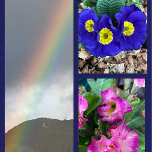 ①昨日見た🌈 いいことありますように 2年目のプリムラが咲き始めました。 ②福寿草と節分草 お出かけ先3月13日撮影 ③チューリップ一本だけでは淋しいので、クリスマスローズとユキヤナギを一緒に生けてみました。 🏷️月曜日にビタミンカラー参加します。