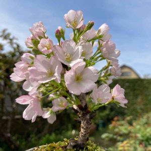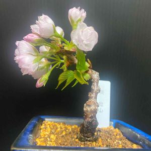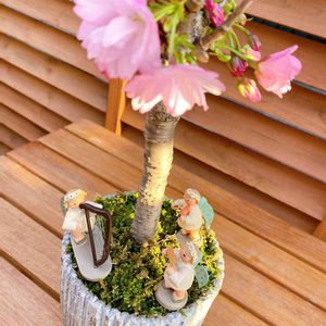 サクラ(桜) 旭山桜(アサヒヤマサクラ) 20cm位の小さな桜🌸の盆栽 4月2日お迎えしました😄 ちょっと大きめの鉢に植え替え🪴🌸 そろそろソメイヨシノの桜🌸も終わりかな… 我が家で遅咲きの旭山桜🌸🌸🌸で また お花見をしよって思って😆💓🎶