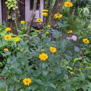 キクイモモドキが今年も咲きました。…ご近所さんから頂きました。 私どもがこの家に越して来てから右も左も分からず、その方には色々と教えて頂きました。困った時には助けても頂きました。お花やお野菜もいろいろ頂きました。働き者で、お身体の悪いご主人を庇いながら田畑仕事を忙しくなさっておられました。その方が、数年前認知症を発症…。悲しいことになりました。 このキクイモモドキが咲くと、あ〜咲いてくれて良かった、今年も咲きましたよ〜と報告したい…何とも悲しくやり切れない明るく黄色いキクイモモドキなのです。
