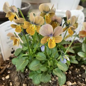 うえたビオラ・シフォンピーチ🍑 寒い中次々と花を咲かせてくれています🌸 品種によって寒さの中の咲き具合に差が出ますね