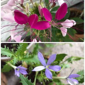 暑い中 クレオメとイソトマの花が咲いてくれました💜❤️