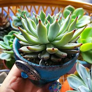 こんばんわ(✿´꒳`)ノ°+.* 欲しかったラウイ♡♡エケベリア やっとお迎え出来たよ(•ө•)♡ 色と形とお粉が好き♡♡ 育てるの難しいって聞いたから緊張する~😧💦 そう言えば先日新しく姪が出来ました^^* またおばさんになっちゃったな(๑´∀`๑)ヶラヶラ