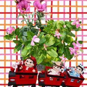 🏷️ペコちゃん祭りに 参加しま〜す🍬😋💕 ぺこちゃん三姉妹が汽車に乗って、お帽子被ってLets go🎶 さくら餅子さんのミルキーピック🍬も持っているよ♪🤣💕 お花はトルコキキョウとニチニチソウ💕