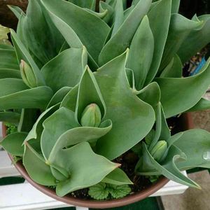 チューリップの蕾💗 蕾の上の方ちょこっとピンク色になってる🎵