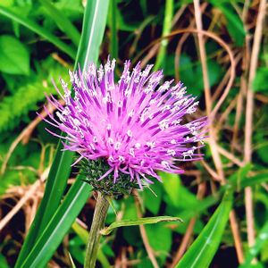 多摩川の河川敷で 【アザミ】 よく見かけるのですが、 花先に白いものが付いているのは なんだろうσ( ̄^ ̄)? 初めてだったので気になりました。 (*^_^*)