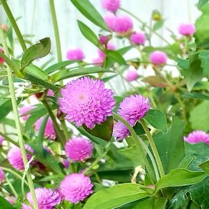 散歩道で見つけました。 【白いセンニチコウ】 センニチコウの仲間は、花そのものではなく紫やピンク、白、黄、赤に色づく苞を観賞します。暑さと乾燥に強く、日本の夏に適した性質で、長期間咲き続けます。