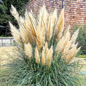 天覧山より 【パンパスグラス】 パンパスグラスは、背丈は2~4mになり、密に群生します。 (小型品種でも、1~2mくらいに成長します) 花の時期 パンパスグラスの花期は、9~11月上旬頃です。 8月下旬から花穂(かすい)を伸ばし始めます。 パンパスグラス(シロガネヨシ)の種類 パンパスグラスは、 花穂の色は白っぽい黄色系が多いですが、赤みのあるピンク系も見かけます。