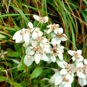 初めての八ヶ岳へ 編笠山から権現岳で、 【コウスユキソウ】 コウスユキソウ(小薄雪草)キク科 7~8月山地の岩の隙間や乾いた礫地に生える高さ10cmほどの多年草。葉は、へら形で長さ17mmほど。綿毛があり全体に白っぽく見える。茎先に灰白色の頭花をつける。(*^_^*)