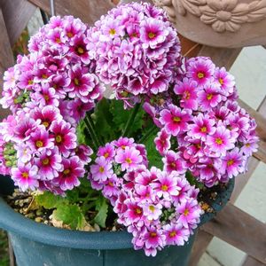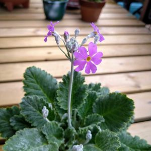 夏越しサクラソウ! 昨日から雨!車庫にしばらく退避です! 元は数年前ご近所から株を頂き、こぼれ種等から毎年引き継いでいます。 今回は昨年からの株の夏越し4株です😀