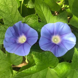 双子のアサガオ。 こんなに綺麗に並ぶのは珍しいなと思ってパチリ📷