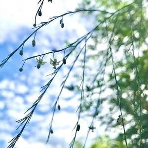 こんな感じで、細く垂れ下がって、小さな黄色の花が咲いています。