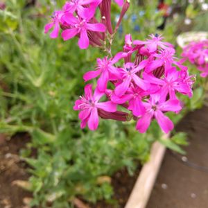 やっと 来てくれたの 切花からの こぼれ種からなのね 原産地 ヨーロッパ 茎の高さ30〜60cmに成長する 茎上部の葉の下に粘液を分泌する部分が帯状にあり ここに虫が来て捕らえられることもあるらしいわ きっと小さな虫ね 食中植物ではなくアリ🐜が茎をよじ登って花に達するのを防いでいるらしいわ あのベタベタする部分ね ※ナデシコ科マンチマ属(シレネ属) 別名がたくさんあります下を見てくださ い