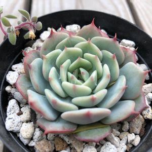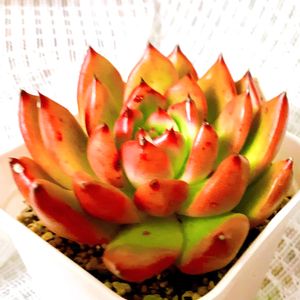 晴れたぁぁぁーヽ(´▽`)/ 昨日の雨☔が嘘のような晴天☀で風もかなりあるので、朝食も摂らずに急いで水遣り&ブロワー吹き。 暫く晴れの日が続くみたいだし、ちょっとだけ肩の荷が降りた(笑)。 今年は冬なのに目まぐるしくお天気が変化するので、水遣りの機会をずっと窺っていたのよね(・▽・) で…今日の多肉はお気に入りの『ロゼ』ちゃん❤ 全体が紅葉するタイプでは無さそう? たけれど、縁とのコントラストがとてもcute✨ 恐らくアガボイデス系なのだろうけれど、セグンダ系・カンテ系と共に好きな品種(*ˊ˘ˋ*) 話が前後するけれど、ブロワー吹きした時にしっかり多肉ちゃんを観ると結構花芽が付いている。 近い内に全部切ってあげないとな(・▽・) 多肉事、やらなくてはいけないことが沢山あるのだけれど、お向かいの60代嫁・彼女無し(恐らく婚歴無し)のおじさんがストーカーじみたことをしてくるので気持ち悪くて…((((;゚Д゚))))ガクガクブルブル DJ時代に付き纏いされた過去があるから、まだまだPTSDから抜けきらなくて怖いのよね(>_<) と…greenの話から脱線した(^_^;) まあ、外に出る時は家族に一緒に出て貰うようにしてるけれど、ホント迷惑な話(。-∀-)
