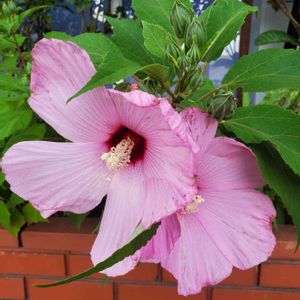 おはようございます。 会社入口に咲いている芙蓉(フヨウ)です。 なかなか正面から撮れませんでしたが。綺麗に咲いてます🙌🏻💕 今日改めて撮ろうと思いましたが、縁が枯れ気味でこれが私にはベストかな~?
