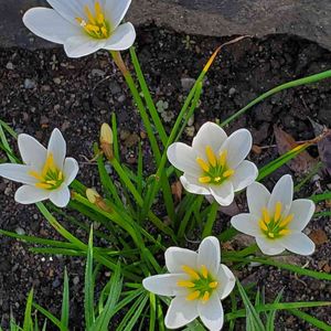 おはようございます。 昨日は、1輪だけ蕾でしたが、今日見たら…なんと🙄たくさん咲いていたゼフィランサス?です。 これもメルカリで購入し、タマスダレとなっていたので、その名前かと思いますが、もしかして違ったら、わかる方は教えて下さい🙇♀️🙏 小さくて可愛いお花です。 前回投稿したのより、早く植えましたが…🤔 期待以上でした~✌️💕