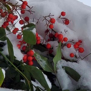 おはようございます。 今日のお花?南天です。 寝室から、大雪の中一部分をのぞかせています…🙄 もう全て雪で埋め尽くされてしまった中、健気に顔を見せてくれました。✌️💕