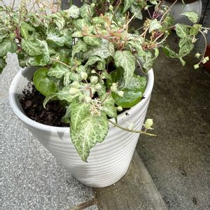 生まれたてホヤホヤの ピンクの蕾がとてもかわいいんです。 拡大しないとわかりませんね(笑) 成長した蕾も 開いたお花も そして実もかわいい🩷 今のところ順調に育っています。 なんでも順調だと 心穏やかになりますね。 これは寄せ植えの中の子です。 他には うすいピンクのペンタス ディコンドラシルバーフォール リシマキアオーレア を植えています。 投稿した時に【絣】かすり ですか?と聞かれましたが よくわからなかったのですが 今日タグが出てきました。 絣と書いてありました😊 (10月16日)