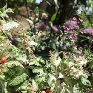 斑入りジュズサンゴ絣 葉っぱはワサワサ白い花もたっぷり付いているのに…実がならない…??😳😳😳😳😳