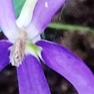 濃い色の花。よく見たら蜘蛛の巣はってない?