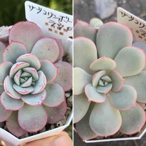★サブコリンボサ 最近急に可愛くなってきたんで ネタの投稿順を早めました😆笑 Lauと付くシリーズはいくつかありますが 原種で丸葉系のラウ026です✨ この子も読み方がたくさんある子ですw 韓国苗はとにかく読み違いが多すぎで あーこれサブコリンボサのことだな🤔 って感じの変な名前のものをよく見かけます(笑) 多すぎて全部は書ききれないので、 見たことあるのだけ別名に載せておきます😅 縁取りの発色といい丸葉なとこといい、 セデベリアのバニラビスにも雰囲気似てますよね? -∴-∵-∴-∵-∴-∵-∴-∵-∴-∵-∴- Echeveria subcorymbosa, Lau026 エケベリア サブコリンボサ ラウ026 和名 不明(情報募集中♪) 別名 サブコリンボーサ サブコリーボサ サブコンボサ ラウ026