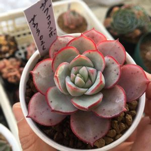 所有している多肉さんの名前は、これなんですか?って聞かれたらさらっと全て言えるように、というのを心掛けているんですが この方が一番難易度が高いと思う。 縁取りのピンクが愛らしい。 サブコリンボーサラウ026