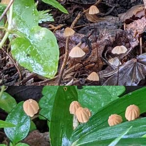 昨日上げさせて頂いた庭のキノコ。2種類でしたが、1種類はいくら見ても見当たらず…?? この写真の上は夕方の写真、左下は朝、右下は上をアップにしました。朝と夕方で大分姿がも色も変わり、びっくりしました。中の様子が見えるように写す向きは変えました。この名前がわかるでしょうか?昨日のもう一つのキノコももし分かるようでしたら教えて下さいね。🙇