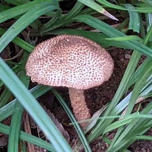 午前中、半日陰の花壇の縁木に生えていました。マシュマロのように見えるこのキノコ。何というキノコでしょうか?…教えて下さい。