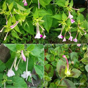 〓早朝の投稿便🚚〓 =第一便= <オシロイバナ> コレクション2021③ ↖️↗️↙️ 白がベースで赤?ピンク? 絞りが入っていますが 一回切りの花模様で 明日同じのが見れると思っても それは不可能かも🤷 ➡️ こちらも白がベースで 赤が1/5?入ってインパクトが増しています😅👍 ↙️ こちらは赤がベースと思われますが、真っ赤に咲くのが嫌だったのでしょうか、少し白を連れ添って咲いていました😂🤭 ↘️ こちらは本家本元の赤のオシロイバナ🌺 こうしてpost🖼️🌺に本文comment📝を書いてる間にも 他の花達は、咲き分け工場では忙しくされてると思いますょ😂😁😂 いつも 🏷️チーム岐阜🍀投稿ありがとうございます😆🙌💕✨🍀💐…(*- -)(*_ _)ペコリ