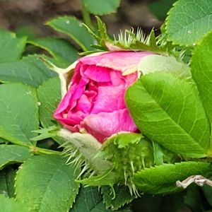 今日のお花 ハマナス これは駅の花壇にある八重咲き。 🌱1日咲きの一日花、浜茄子。 🌱花言葉「悲しくそして美しく」 この蕾を見た時は凶器に感じました😵💫 何に対してこんな姿になったんでしょうね… 小鳥から蕾を守る為? 可憐な花を守る為とはいえ、こんなガードしなくても🥲 ん?ハマナスじゃないの?イザヨイバラ?だからこんなにトゲトゲ? 沢山の方が投稿しておられますね。 花壇の人に教えてもらわなくちゃ。