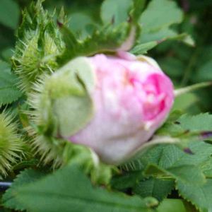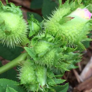 イザヨイバラ〈十六夜〉 オールドローズ 返り咲き 家のはまだ小さい苗💓 イガイガな蕾も嫌いじゃない♪ 完全な円形にはならずに一部が微妙に 欠けることから「十六夜」だって🌔