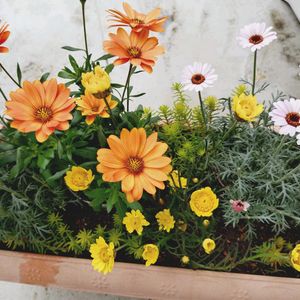 新たに迎えたお花を寄せ植えにして数週間 だいぶお花も咲きまとまってきたかなっと?💞 ✴ローダンセマム🩷 淡いピンク色から白色に変わるよう ✴オステオスペルマム🧡 オレンジ色で鮮やかです ✴ヘリクリサムペーパーデージー💛 小さめな黄色いお花で触るとカサカサしててドライのような可愛いお花 ✴セダム💚 みなお花持ちも良さそう💗