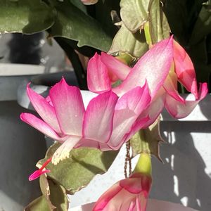 🏷️今日のお花のシャコバサボテン(デンマークカクタス) ① 少し前のデンマークカクタス カミーラ✨12/3撮影…今年は花付きがイマイチかな😌花弁をアップで見るとキラキラして綺麗✨咲いてくれてありがとう🙏 ② 今日の状態 少し上から…よく見ると根っこ出てる やはり根鉢ビッチリかな〜植え替えなくては… ③ 同じく今日のデンマークカクタス パールウェーブ✨ この白いシャコバサボテンは近年咲いていませんが… カミーラより葉っぱがしっかりしてます🌿