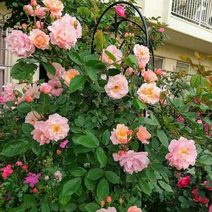 散歩道の途中に毎年塀にノウゼンカヅラを這わせている家があります。😊 今年も綺麗に咲き始めました。珍しいピンクの花です。🐱🎶🐱