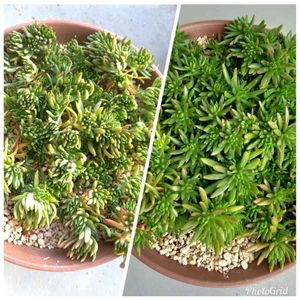 下は子持ち蓮華だと思うのですが、 上は似ているけど…違う種類ですよね❓❓🤔 全体的に形の雰囲気?は似てるけど、色が全然違います🧐 もし、名前がわかる方いらっしゃいましたら、 是非教えてください。よろしくお願いします‼️