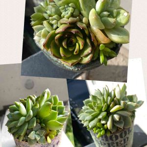 徒長していた子をカット✂️して 寄植えにしました🪴 置き場がないのでまとめて寄せただけですが🤣 大きい鉢が置けないので 無理矢理詰め込んだ感じです🤣 置き場がないから 徒長させないようにしないといけませんね💦 もぎった葉っぱも沢山出て どうしましょう💧