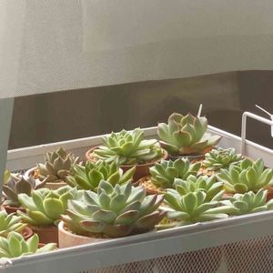 度々の心痛む写真で申し訳ありません🙇♀️ この子達も先日の台風明けの日曜日に遮光しなかったせいで1日で焦げてしまいました😭 ⬆️ プリドニス×エレガンス 真ん中 ヒアリナ×オデロイ ⬇️ ブラックサバス ブラックサバスの変わり果てた姿を見た時は かなりショックを受けました😭 この子は焦げてジュレてしまったようで この後ジュレた葉っぱを取りました。 ブラックサバスの姿にショックを受けていたけど 周りを見ると焦げた子がチラホラ😱 めげずにまた多肉さんのお世話頑張ります💪