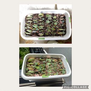 連投すいません💦 🏷毎月13日と14日葉挿しの日に参加します🌱 ⬆️2021.6.13 ⬇️2021.7.11 左端のアクアリウスさんが 大きくなってきて徒長気味💧